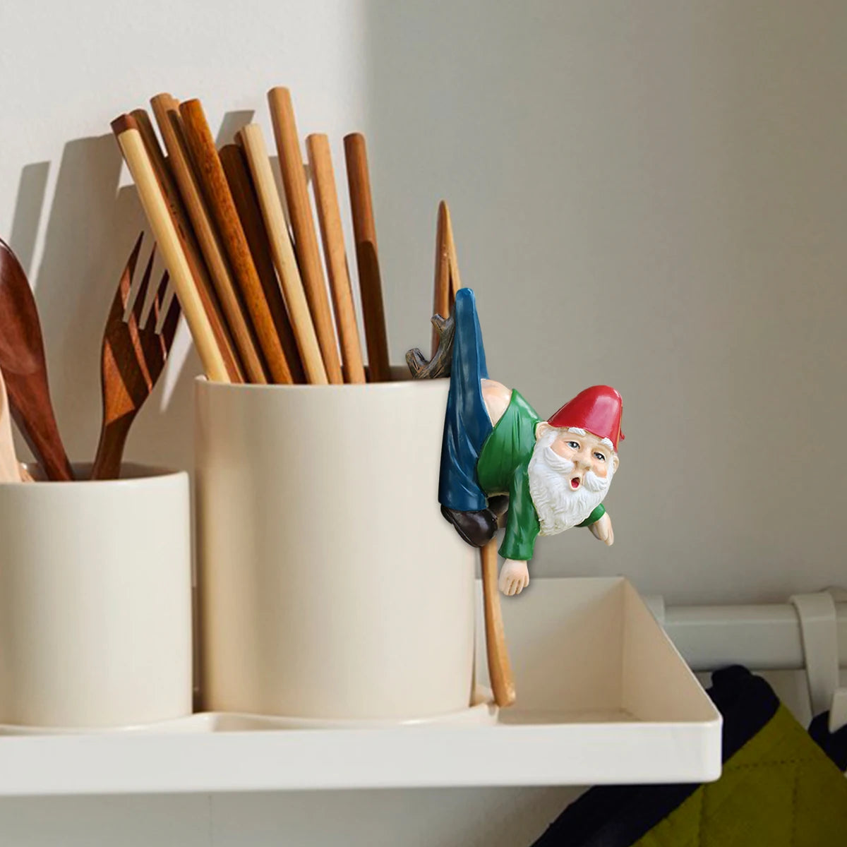😂 Diseño divertido y original: un gnomo colgado de la maceta con gesto pícaro que roba miradas.